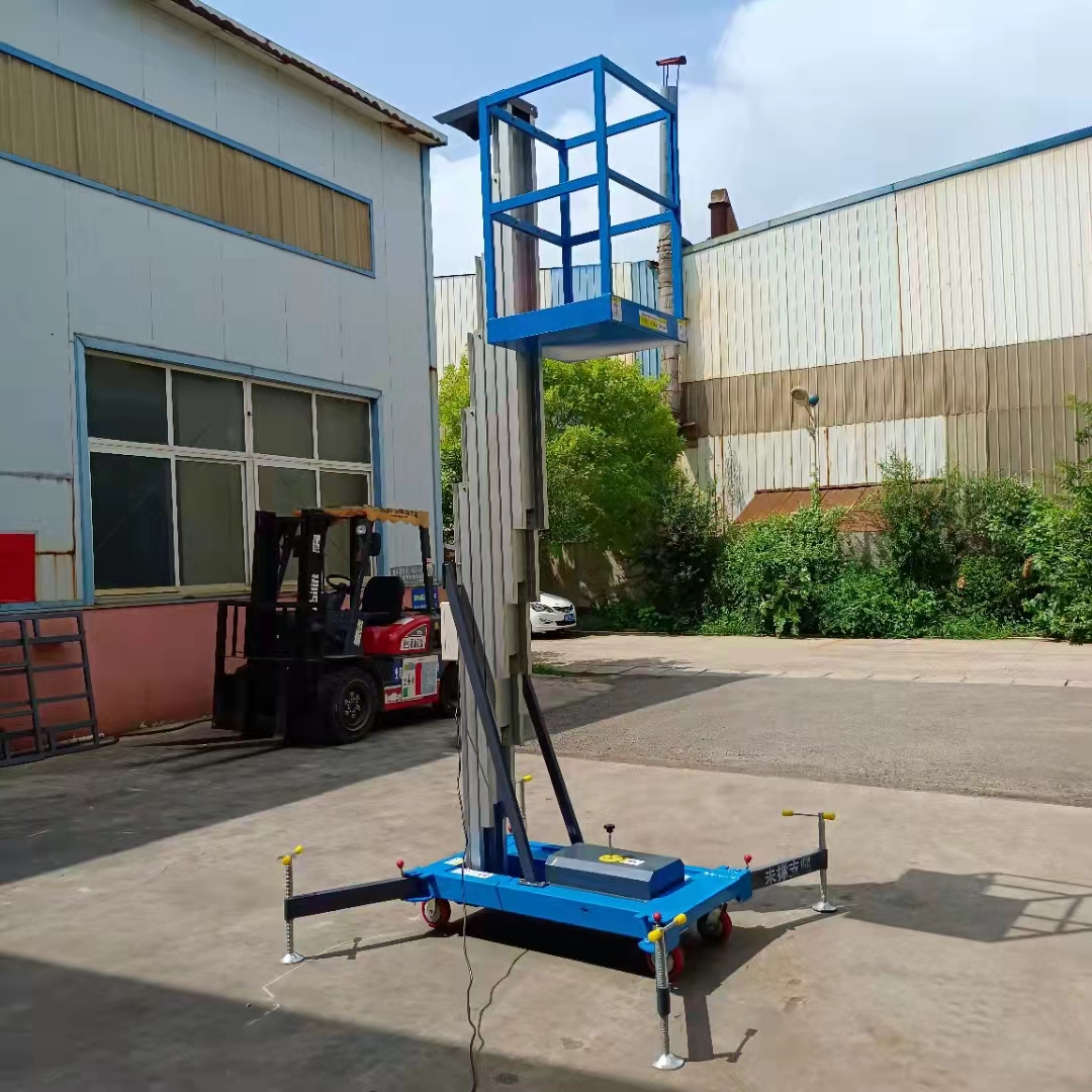 單桅柱鋁合金升降機(jī)采用單邊桅桿+油缸的方式提供支撐力,平臺(tái)同樣采用花紋板作為底部臺(tái)面,且配備有安全防護(hù)措施和操作手柄。由于此款升降平臺(tái)的支撐力采用單邊方式,因此在承載能力上僅提供一人攜帶工具作業(yè),承載大重量為125Kg。單桅柱鋁合金升降機(jī)的自身重量較小,因此是酒店、公寓等室內(nèi)裝修的佳選擇。