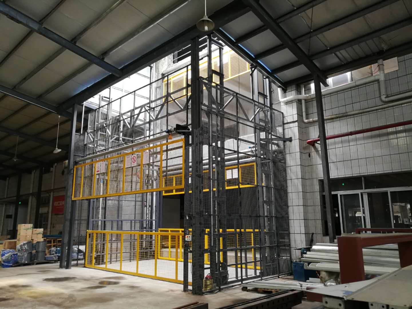 四柱式升降平臺采用了四角立柱+液壓油缸+板式鏈條+鋼絲繩等4重安全防護,且各樓層間設(shè)有限位開關(guān)及緩沖設(shè)備,緩解了升降平臺到達制定樓層時的緩沖力,且平臺設(shè)有緊急停止按鈕、緊急下降按鈕等,為各類突發(fā)事項做好了萬全準(zhǔn)備。